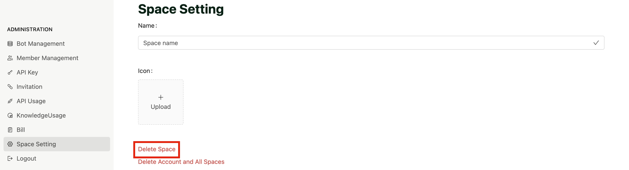 Please note that clicking 'Delete Account and All Space' will delete your account and all Space.