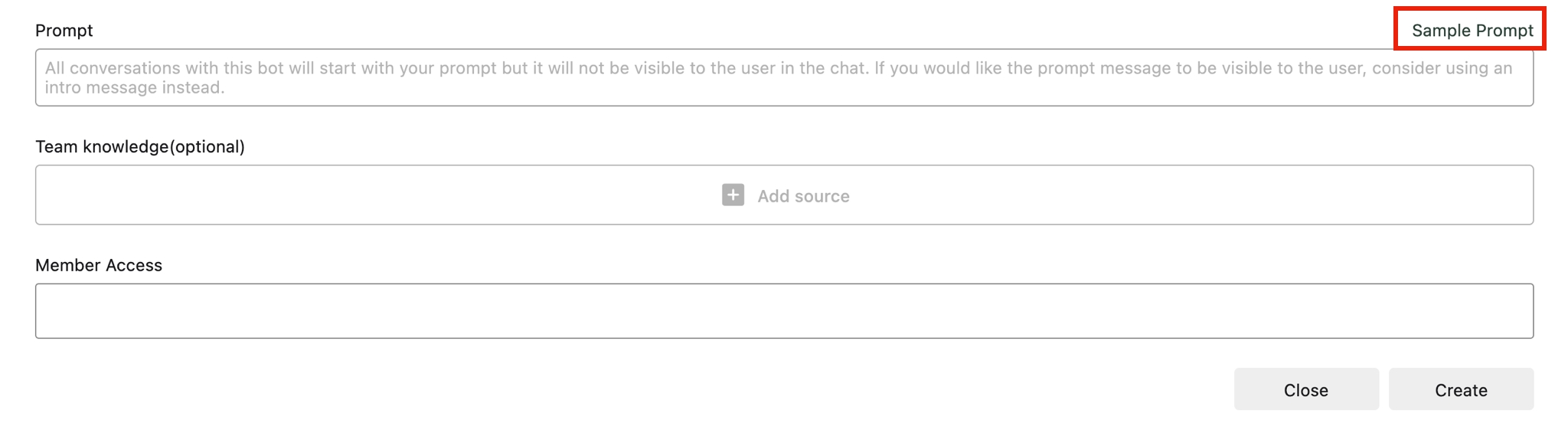 The prompts you enter when creating a bot are the instructions used to initialize the conversational AI. These prompts serve to guide the AI to perform certain tasks, and they play a significant role in controlling the output of the model.